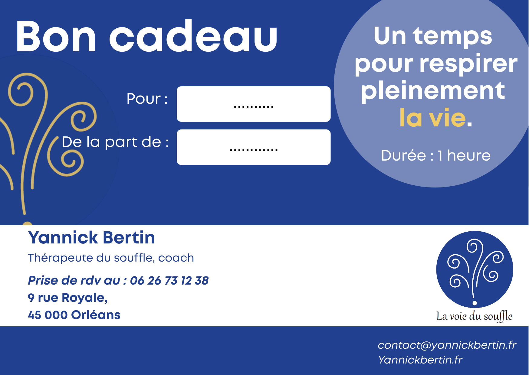Pour avoir un bon cadeau et offrir un temps pour respirer pleinement la vie, me contacter.